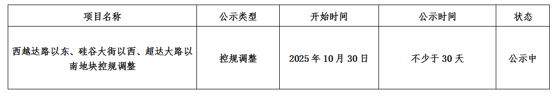 西越達路以東、硅谷大街以西、超達大路以南地塊控規調整