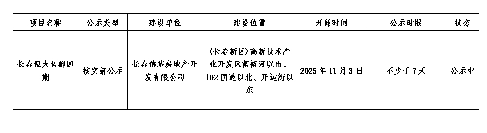 長春信基房地產開發有限公司長春恒大名都四期項目規劃核實前公示