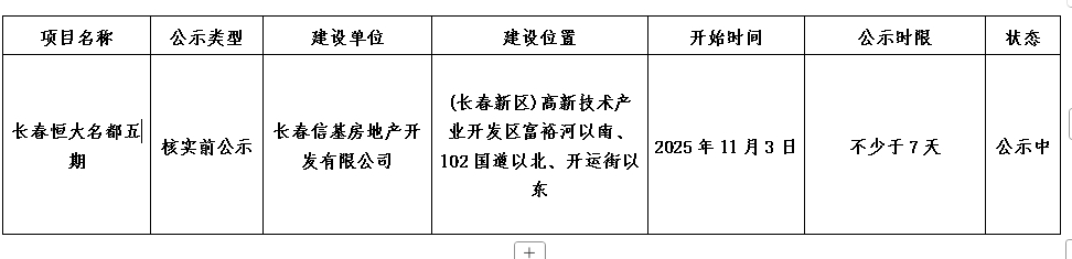 長春信基房地產開發有限公司長春恒大名都五期項目規劃核實前公示
