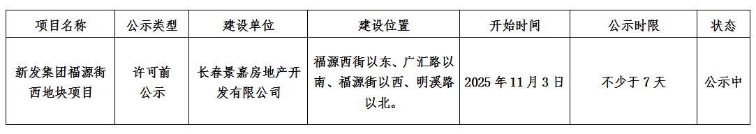 新發集團福源街西地塊項目行政審批批前公示