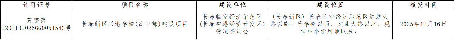 長春新區興港學校(高中部)建設項目行政審批批前公示