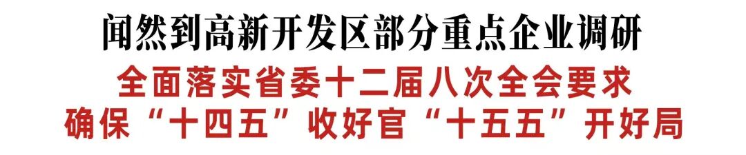 聞然強調,四季度是完成全年各項任務的沖刺期。要把學習貫徹黨的二十屆四中全會精神和省委十二屆八次全會精神轉化為強大動力,錨定全年經濟社會發展目標,精準高效做好服務保障,奮力完成全年目標任務,確保“十四五”圓滿收官、“十五五”良好開局。要深入企業走訪問需、解決困難,強化要素支撐,聚焦企業攻克關鍵核心技術、培育新質生產力的現實需求,大力支持企業引進高端人才、建設研發平臺,助力企業強信心、擴市場,讓企業創新活力充分涌流,與企業雙向奔赴、共贏發展。要謀深謀實“十五五”規劃,牢牢把握高質量發展這個首要任務,突出企業科技創新主體地位,在規劃銜接上提供精準服務,主動對接企業“十五五”發展愿景,推動企業規劃與新區產業布局、創新體系深度融合,實現企業戰略與區域發展同頻共振,為推動新區“十五五”高質量發展奠定堅實基礎。要更好統籌發展和安全,壓實安全生產責任,防范遏制重特大事故發生,以高水平安全保障高質量發展。
