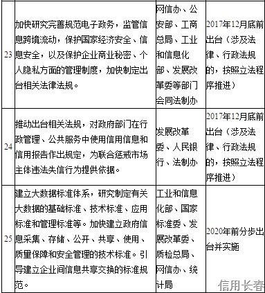 (三十一)建立完善管理制度。處理好大數(shù)據(jù)發(fā)展、服務(wù)、應(yīng)用與安全的關(guān)系。加快研究完善規(guī)范電子政務(wù),監(jiān)管信息跨境流動,保護國家經(jīng)濟安全、信息安全,以及保護企業(yè)商業(yè)秘密、個人隱私方面的管理制度,加快制定出臺相關(guān)法律法規(guī)。建立統(tǒng)一社會信用代碼制度。建立健全各部門政府信息記錄和采集制度。建立政府信息資源管理制度,加強知識產(chǎn)權(quán)保護。加快出臺關(guān)于推進公共信息資源開放共享的政策意見。制定政務(wù)信用信息公開共享辦法和信息目錄。推動出臺相關(guān)法規(guī),對政府部門在行政管理、公共服務(wù)中使用信用信息和信用報告作出規(guī)定,為聯(lián)合懲戒市場主體違法失信行為提供依據(jù)。