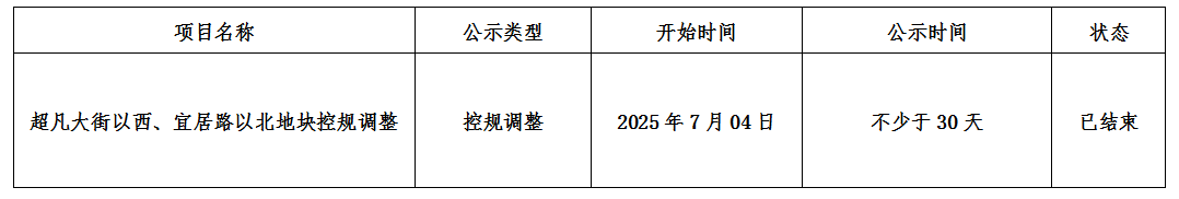 超凡大街以西、宜居路以北地塊控規調整公示
