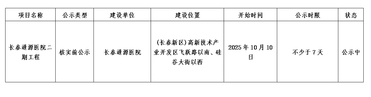 長春通源醫院二期工程項目規劃核實前公示