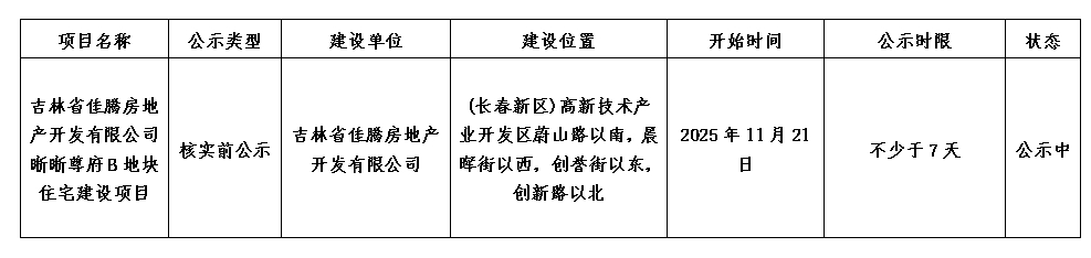 吉林省佳騰房地產開發有限公司晰晰尊府B地塊住宅建設項目規劃核實前公示