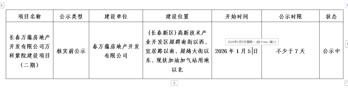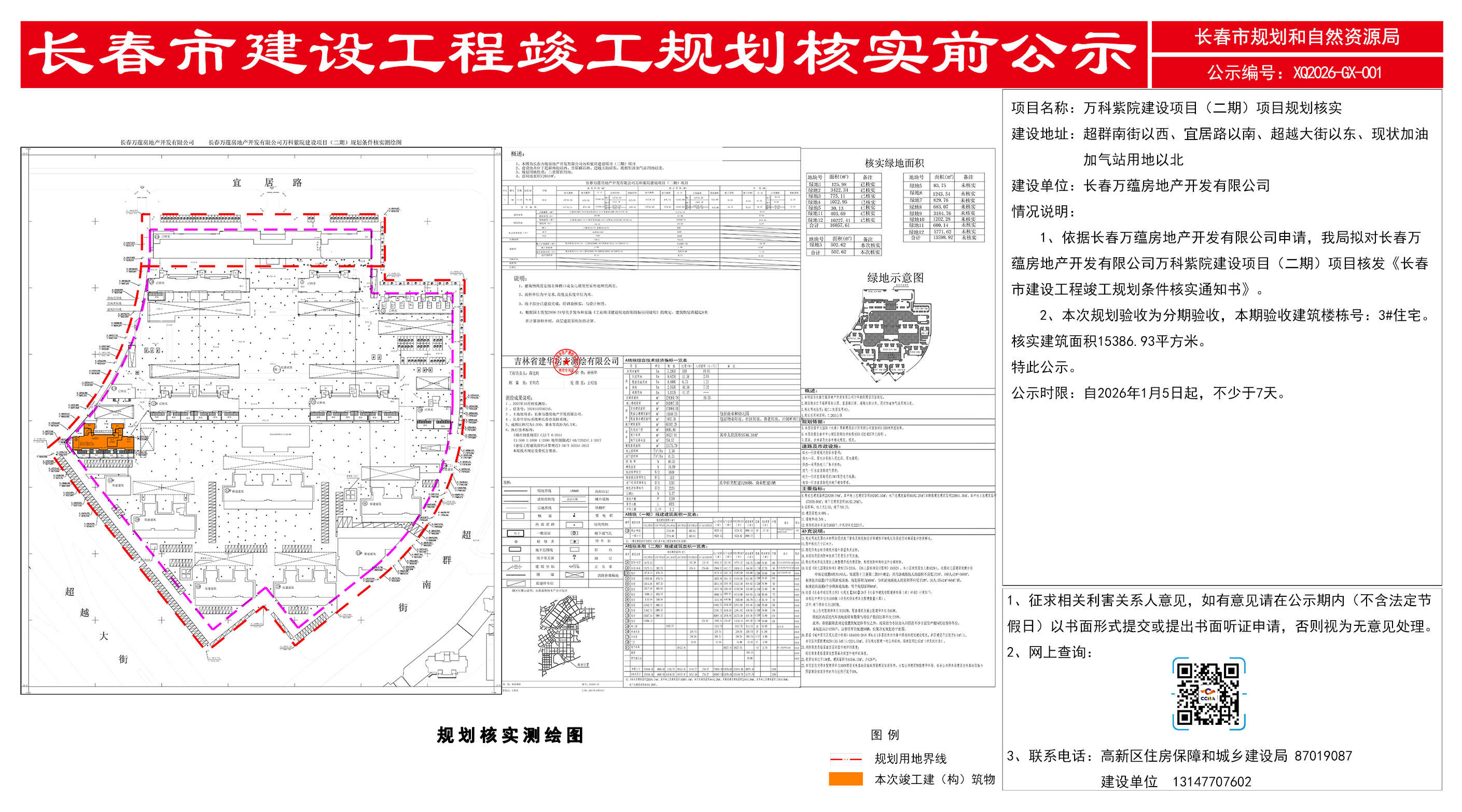 長春萬蘊(yùn)房地產(chǎn)開發(fā)有限公司萬科紫院建設(shè)項目(二期)規(guī)劃核實前公示
