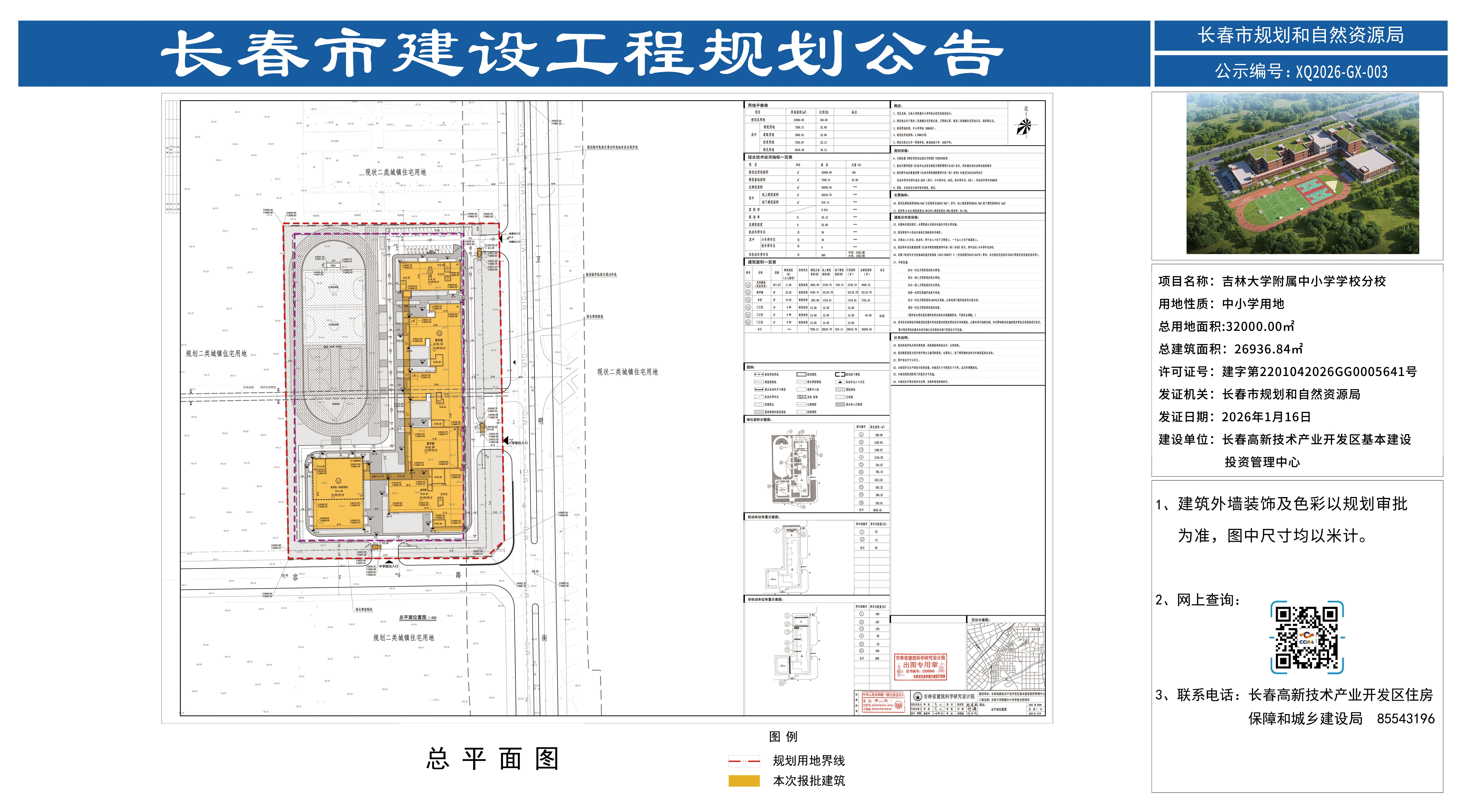 吉林大學附屬中小學學校分校建設工程規劃許可證批后公告