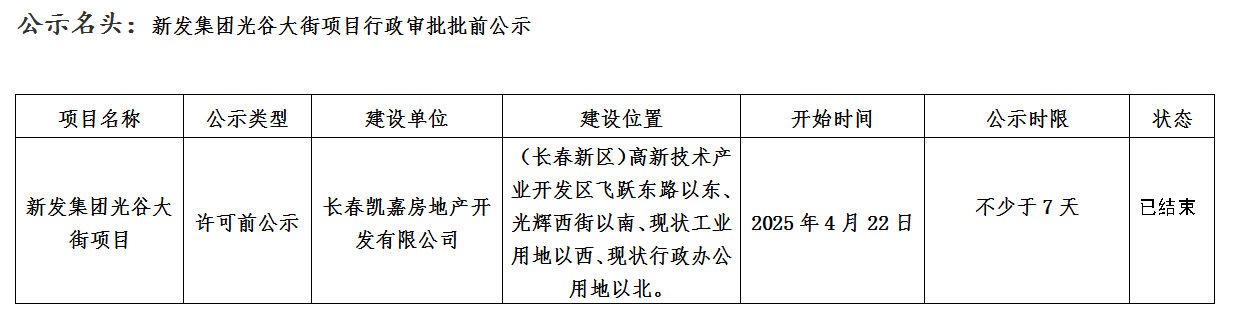 新發集團光谷大街項目行政審批批前公示