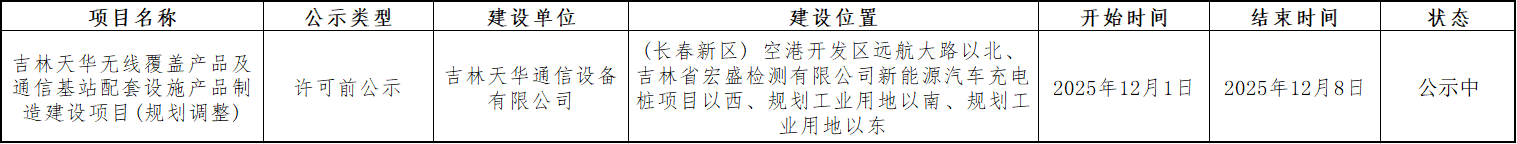 吉林天華無線覆蓋產品及通信基站配套設施產品制造建設項目(規劃調整)