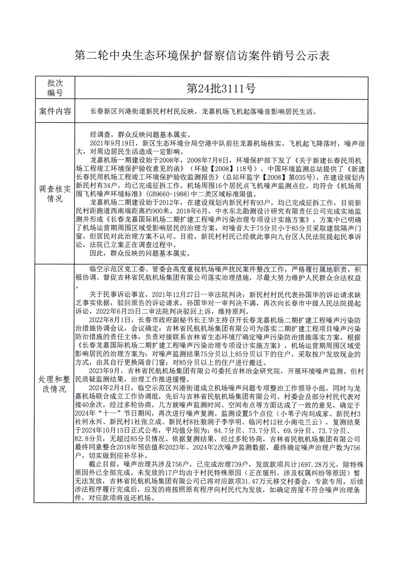 第二輪中央生態環境保護督察信訪案件銷號公示表(第24批3111號)