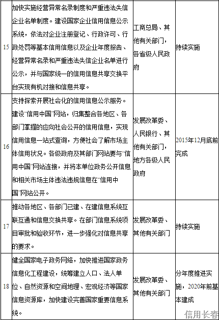 (十九)大力推進市場主體信息公示。嚴格執(zhí)行《企業(yè)信息公示暫行條例》,加快實施經(jīng)營異常名錄制度和嚴重違法失信企業(yè)名單制度。建設(shè)國家企業(yè)信用信息公示系統(tǒng),依法對企業(yè)注冊登記、行政許可、行政處罰等基本信用信息以及企業(yè)年度報告、經(jīng)營異常名錄和嚴重違法失信企業(yè)名單進行公示,提高市場透明度,并與國家統(tǒng)一的信用信息共享交換平臺實現(xiàn)有機對接和信息共享。支持探索開展社會化的信用信息公示服務(wù)。建設(shè)“信用中國”網(wǎng)站,歸集整合各地區(qū)、各部門掌握的應(yīng)向社會公開的信用信息,實現(xiàn)信用信息一站式查詢,方便社會了解市場主體信用狀況。各級政府及其部門網(wǎng)站要與“信用中國”網(wǎng)站鏈接,并將本單位政務(wù)公開信息和相關(guān)市場主體違法違規(guī)信息在“信用中國”網(wǎng)站公開。